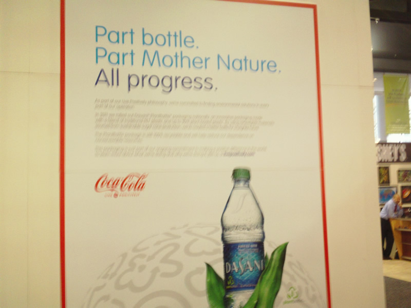 At the 'dining table' Nestlé offered water tastings. Nestlé is the world's largest seller of bottled water, which is an environmental disaster.