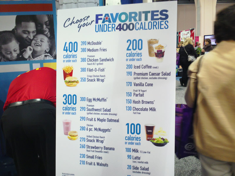 At the McDonald's booth was this promotion of 'under 400 calories' items, the company's latest way of spinning its products