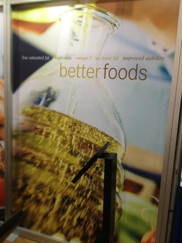 The Monsanto booth with signs touting 'better seeds.'